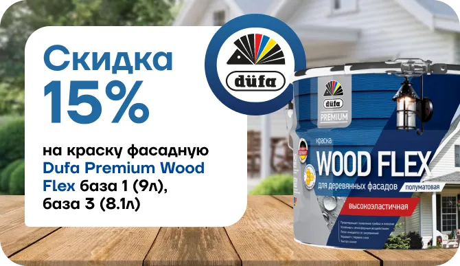 Скидка 15% на фасадную краску Dufa Premium Wood Flex